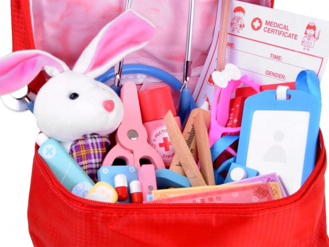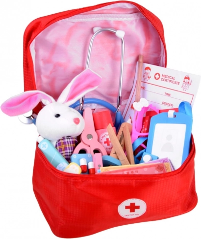 Tato víceprvková lékařská sada je navržena pro bezpečnou a inspirativní hru. Dřevěné nástroje jsou příjemné do ruky, pevné a barevně atraktivní, plastový je pouze identifikátor a brýle. Skutečným tahákem je kovový stetoskop s gumovou hadičkou, který po přiložení k hrudi umožní slyšet tlukot srdce – stejně jako u opravdového lékaře.