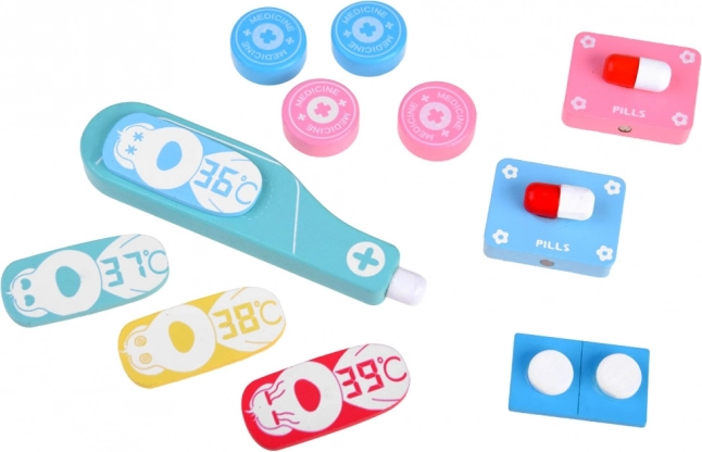 Stříkačka, nůžky, pinzeta či teploměr jsou z odolného dřeva s příjemným povrchem. Podporují jemnou motoriku a bezpečnou hru.
