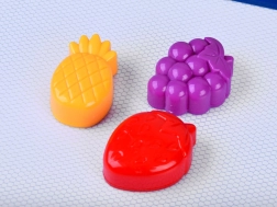 Tři razítka ve tvaru ananasu, jahody a hroznu jednoduše vtisknou na plochu zábavné tvary a rozšíří možnosti tvoření.