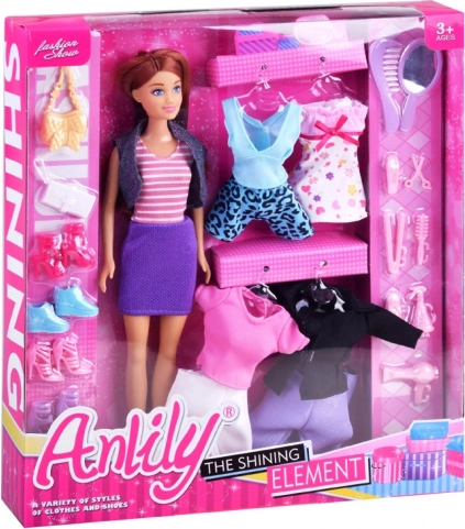 Objevte svět módy s panenkou ANLILY a rozsáhlou sadou oblečení a doplňků. Děti mohou snadno kombinovat šaty, trička, kalhoty, sukně a boty, doplnit je kabelkami a upravit účes pomocí hraček pro styling. To vše podporuje fantazii, jemnou motoriku a samostatnou hru.