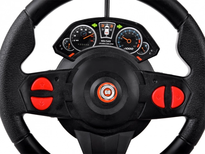 Tento futuristický model s nízkým podvozkem a zadním spoilerem přináší dětem i dospělým hodiny zábavy. Ovladač ve tvaru volantu skvěle padne do ruky a ve spojení s pedály věrně simuluje řízení. Přední světla se při jízdě vpřed rozsvítí a dodají jízdě atraktivní efekt.
