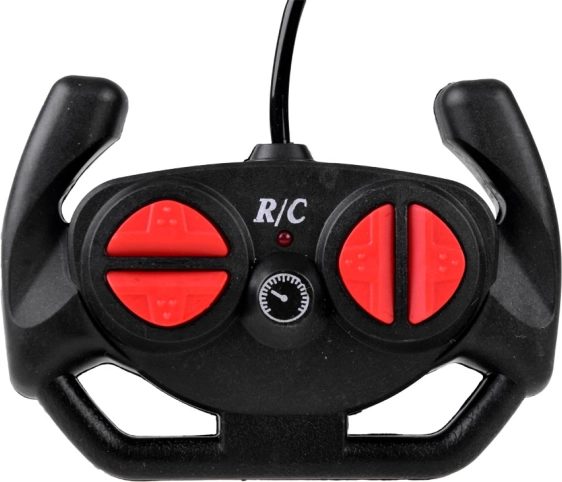 Dálkový ovladač ve tvaru volanty umožňuje precizní ovládání směru jízdy, včetně otáčení.