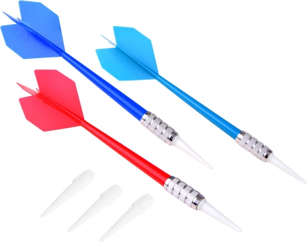 Sada obsahuje tři šipky s kovovými držadly a bílými plastovými hroty, ideální pro bezpečné vnitřní hry.