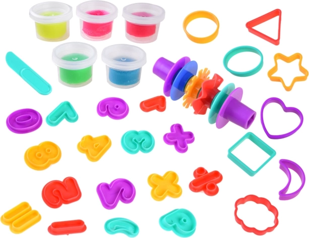 Dětská masová kreativní sada s formičkami poskytuje skvělou příležitost pro rozvoj kreativity a logického myšlení. Díky pestré paletě barev a různorodým formám mohou děti objevovat svět čísel a tvarů, rozvíjet motorické schopnosti a fantazii.
