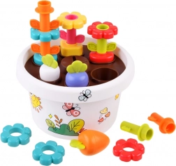 Kreativní myšlení je stimulováno skrze zdobení květináče a vytváření květinových struktur s pomocí magnetických mrkví a dalších barevných dílků.