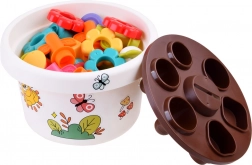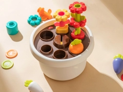 Ve středu základny květináče se nachází otvor pro vkládání žetonů, což zdokonaluje koordinaci rukou a očí. Sada zahrnuje také barevné samolepky pro zdobení květináče, čímž se rozvíjí kreativita dětí.
