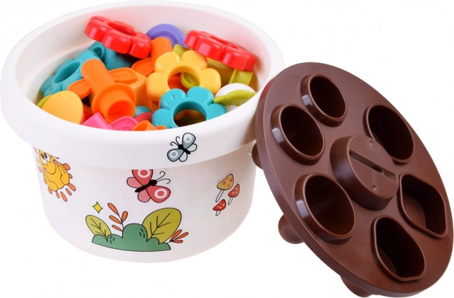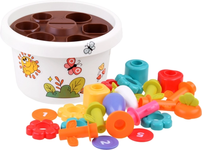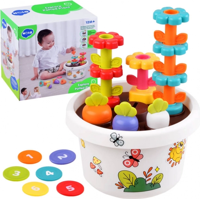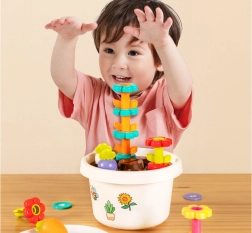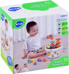 Každá část hračky nabízí různé možnosti, jak se děti mohou učit základní barvy a tvary. Všechny díly lze snadno uklidit do květináče, což šetří místo a udržuje pořádek.