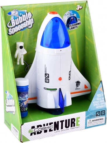 Automat na bubliny ve tvaru rakety je snem každého malého dobrodruha. Jakmile vložíte láhev s roztokem do spodní části rakety a stisknete tlačítko na jejím hřbetu, začne magie plná barevných bublin. Děti mohou sledovat, jak se raketa pohybuje a z její přední části se vypouštějí veselé bubliny.