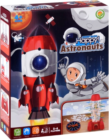 Zažijte zábavné chvíle s rodinnou hrou Raketa Vesmírní Astronauti, která vyžaduje logické myšlení a soustředění. Hráči se snaží vytáhnout barevné tyčinky, aniž by spadli malí astronauti uvnitř rakety. Vítězí ten, kdo zachrání nejvíce astronautů!