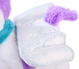- Je příjemně měkký na dotek a má snímatelné barevné mašličky a lesklá křídla.