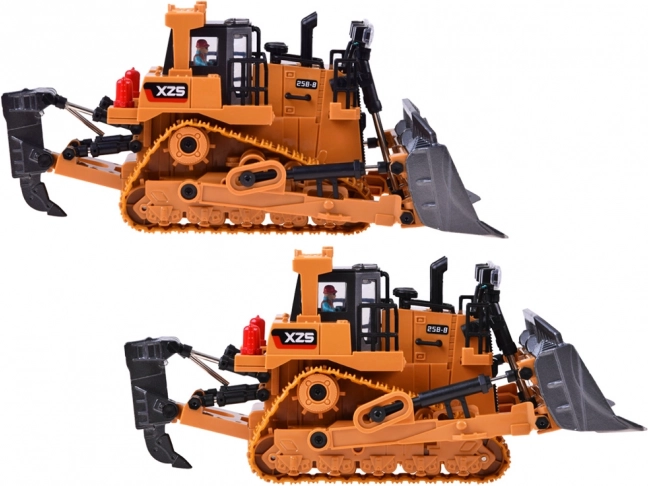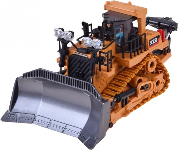 RC buldozer je vyroben z odolného plastu s důrazem na detaily. Kovová radlice a zadní kypřicí hák zvyšují životnost hračky, zatímco gumové pásy zajišťují výbornou přilnavost na různých površích. Design v oranžovo-šedé barvě připomíná skutečné stavební stroje a podněcuje dětskou fantazii.