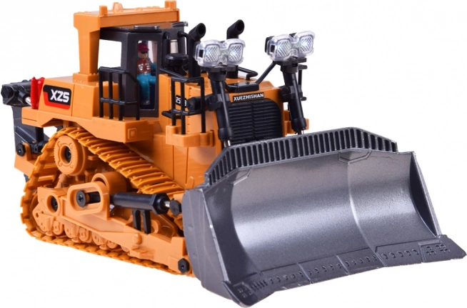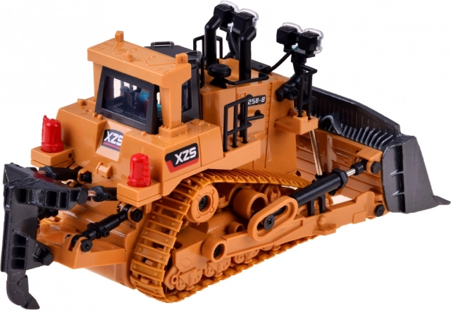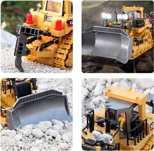 Buldozer simuluje práci skutečného stroje: zvuk motoru, alarm při zatáčení a 4 přední světla pro ještě větší zážitek ze hry.