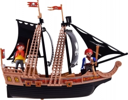 Vydejte se na dobrodružství na otevřeném moři s touto bohatě vybavenou pirátskou sadou. Velká loď s černými plachtami má skrytá kolečka pro snadný pohyb a tlačítko, které spouští světelné a zvukové efekty. Nechybí střílející dělo s kuličkami, 4 figurky, člun, poklady a spousta doplňků pro kreativní hru už od 3 let.