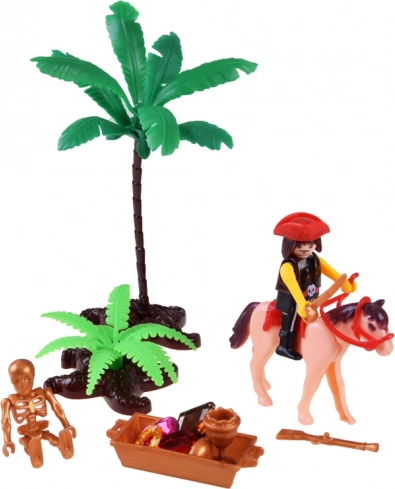 - velká pirátská loď; šalupa s vesly; dělo + 4 kuličky; 4 figurky; kůň; palma; keř; truhla; zlatá truhla; kostra; 2 sudy; pytel; poklady (diamanty, pohár, váčky s mincemi); doplňky (klobouk, šátky, šavle, puška, dalekohled)
