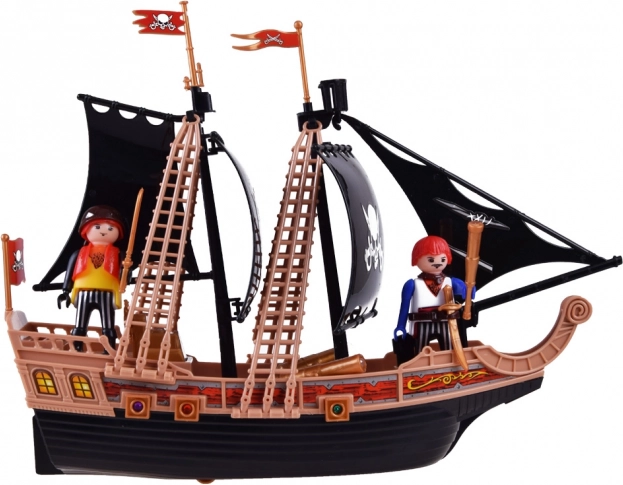 Tahle detailně zpracovaná pirátská loď s černými plachtami a znakem lebky promění dětský pokoj v bouřlivé moře. Loď jezdí díky kolečkům plynule po podlaze a postranní tlačítko aktivuje realistické zvuky bitvy a blikající světla u kormidla, na palubě i v hlavních dělech.