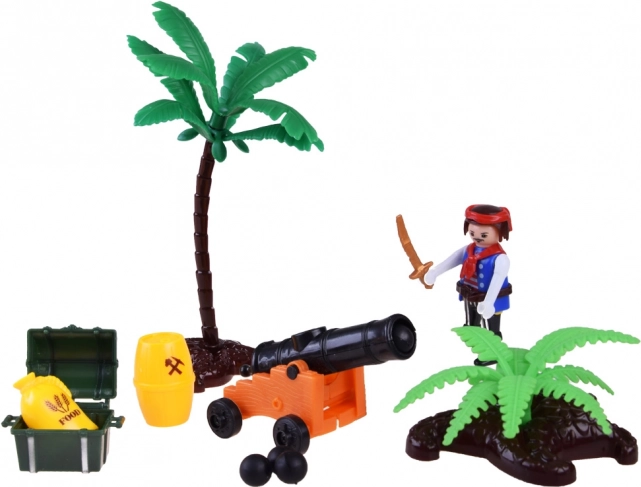Čtyři rozdílné figurky a zvířecí parťák vytvářejí živou posádku. Doplňte je člunem, palmou a sudy a zrodí se nekonečno pirátských příběhů.