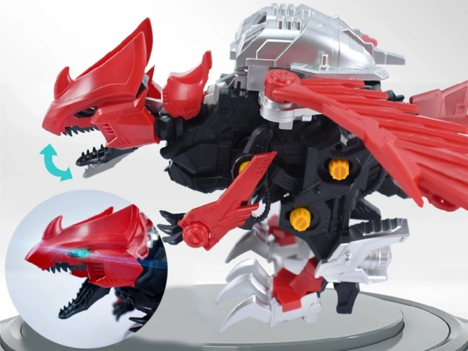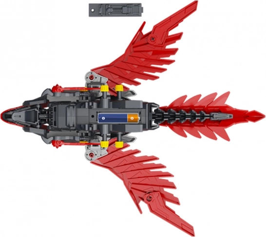 Po sestavení raptor ožije: mává křídly, otevírá tlamu a hýbe ocasem. Mechanismus napájený 1× AAA přináší dynamickou hru i efektní prezentaci modelu.