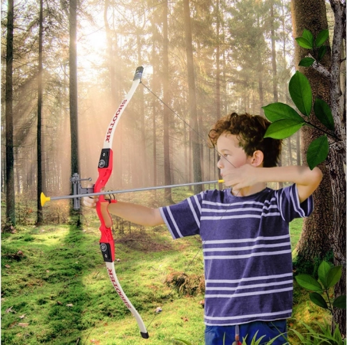 Lehký plastový luk s pohodlným úchopem zvládnou i menší děti – perfektní pro začátky v lukostřelbě.