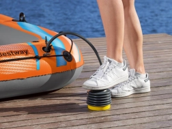 Součástí balení jsou vesla, nožní pumpa a opravná záplata pro okamžité užití.