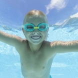 Polykarbonátové čočky s protizamlžovací úpravou a UV ochranou poskytují čisté vidění a zároveň chrání oči dětí při plavání i potápění.