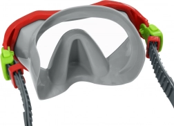 Polykarbonátová čočka s UV filtrem chrání oči před sluncem i při hladinovém plavání. Nastavitelný dělený popruh umožní rychlé a přesné dotažení na různou velikost hlavy, takže maska drží na místě i při skocích do vody.