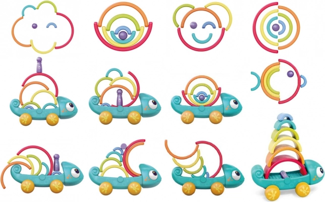 Tento barevný chameleon nabízí mnoho způsobů hry, čímž udrží pozornost dítěte a podporuje jeho kreativitu. Díky hře s chameleonem může dítě rozvíjet jemnou motoriku, prostorovou představivost, schopnost rozpoznávání barev a srovnávání.
