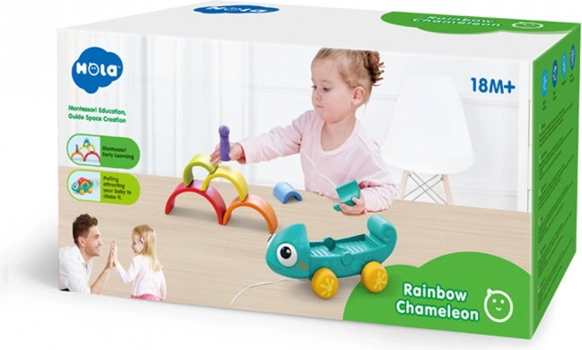 Tahací funkčností je chameleon ideální pro podporu dítěte v pohybu a chůzi. Hračku lze táhnout za šňůru.
