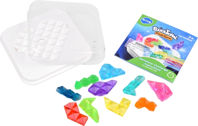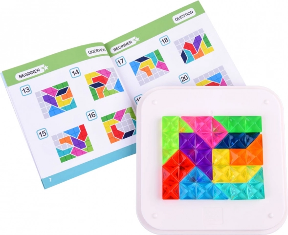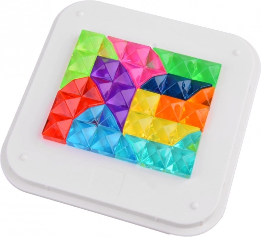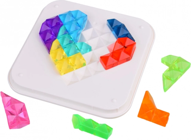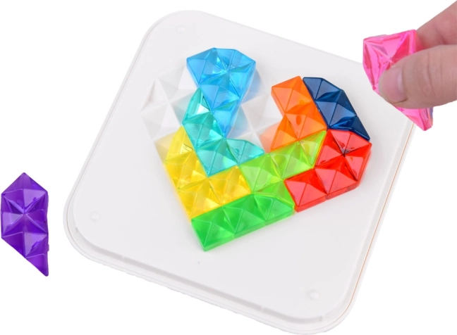 Objevte neomezené možnosti kreativního tvoření s touto jedinečnou diamantovou skládačkou. Sada obsahuje 10 barevných plastových kousků, které se skládají do různých vzorů podle přiložené knížky nebo vaší vlastní fantazie. Deska má dvě strany – jednu se srdcem a druhou se čtvercem. Veškeré dílky lze po hraní prakticky uložit do průhledné krabičky, což usnadňuje úklid a skladování.