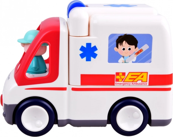 Sanitka je profesionálně „vybavené“ vozidlo pro hry na záchranáře. Po otevření se promění v miniaturní ošetřovnu s nástroji, monitorem EKG a rentgenem. Na spodní straně je přepínač se dvěma režimy – hraní na místě nebo samostatná jízda s automatickou změnou směru při nárazu na překážku. Během jízdy sanitka svítí a přehrává zvuky startu motoru, sirény, klaksonu, brzdění i veselou melodii.