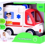 - světelné efekty, zvuky motoru, siréna, klakson, brzdění, melodie; 3 tlačítka se zdravotnickými zvuky