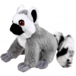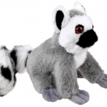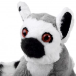 Lesklé plastové oči a černo-bílý pruhovaný ocas dodávají lemurovi živý a věrný vzhled.