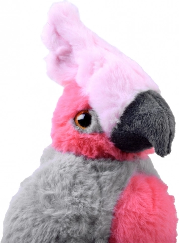 Tato plyšová papouščí kamarádka inspirovaná australským druhem kakadu růžová vyniká precizním zpracováním a důrazem na detaily. Lesklé plastové oči, kontrastní šedo‑růžové tělo a měkoučký plyš z ní dělají perfektní hračku na každý den i krásný dárkový tip.