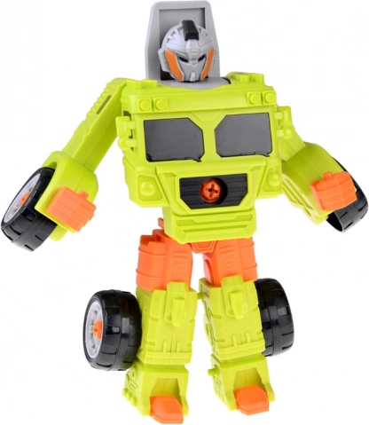 Tento chytrý model kombinuje funkční sklápěčku a transformujícího robota. Stačí pár jednoduchých kroků – nadzvednout přední kola do stran, uvolnit a vysunout hlavu, sklopit kabinu a vysunout zadní část pro vytvoření nohou – a z pracovního vozu je impozantní robot připravený na akci.