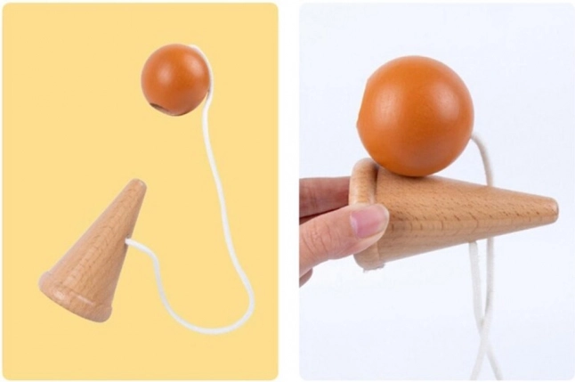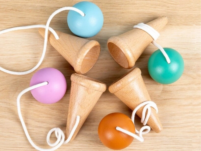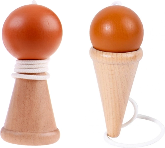 Objevte kouzlo jednoduché, ale chytlavé dřevěné hry – stačí rozkývat kuličku na šňůrce a pokusit se ji chytit na kuželový držák. V jednodušší variantě ji usadíte do prohlubně, v té náročnější ji nasazujete přímo na hrot. Tato nadčasová zábava rozvíjí koordinaci oko–ruka a učí přesnosti i trpělivosti.