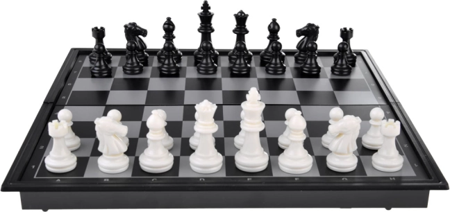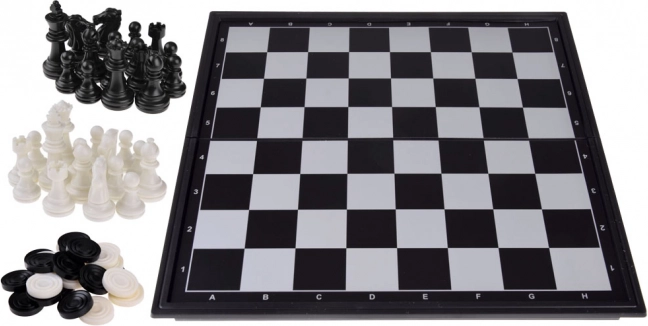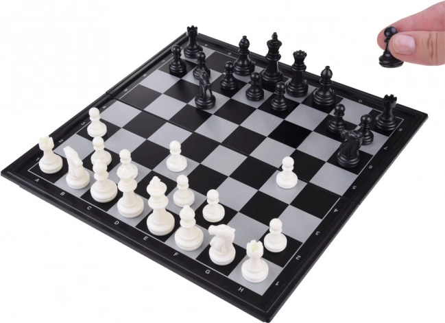 Objevte praktickou sadu, která kombinuje šachy a dámu v jednom. Skládací plastová šachovnice s notacemi je lehká, odolná a díky magnetickým figurám pro šachy si zahráte i na nakloněné ploše. Dáma využívá stejné hrací pole s přiloženými kameny. Ideální pro rodiny, začátečníky i pokročilé hráče, kteří chtějí trénovat strategii kdekoli.