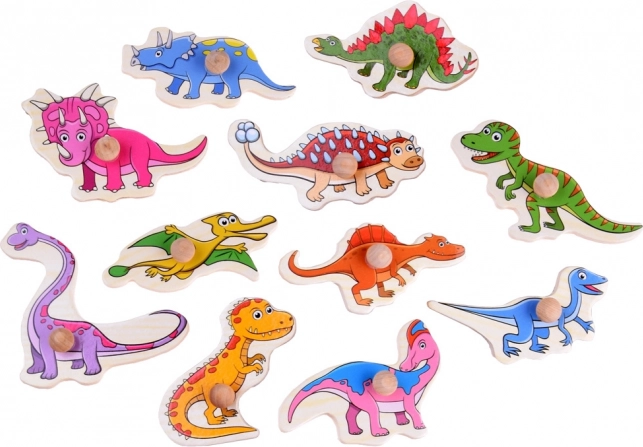 Objevte svět pravěkých tvorů s kvalitní dřevěnou skládačkou dinosauři. Díly jsou navrženy v přátelském, pohádkovém stylu a každý má praktickou úchytku, aby se dětem snadno zvedaly a vkládaly zpět do výřezů. Při hře si děti procvičí rozlišování tvarů, postřeh i koordinaci oko–ruka.