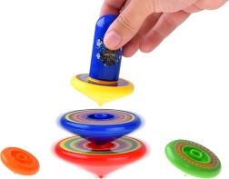 Hrajte si dle věku a dovedností: mladší děti mohou pozorovat roztočené barvy a učit se manipulaci, starší se pustí do soutěží – kdo udrží káču déle v chodu, nebo kdo postaví nejvyšší rotující pyramidu. Díky pěti velikostem káč je hra variabilní a stále zábavná.