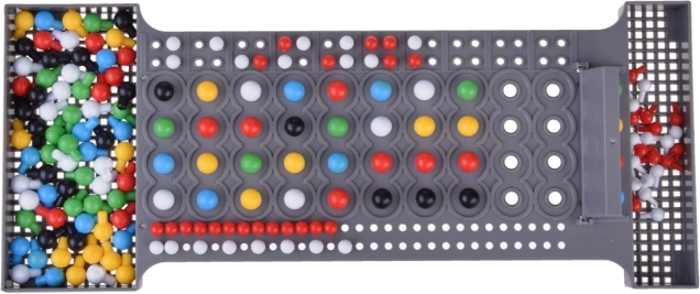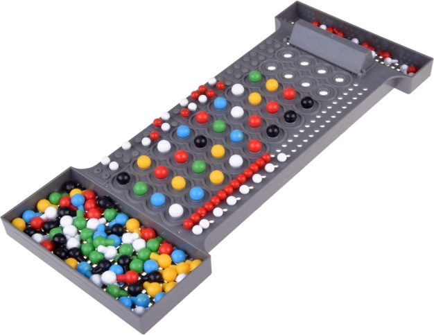 Červené, modré, zelené, žluté, černé a bílé kolíčky umožňují vytvářet širokou škálu kódů a variant hry.