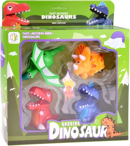 Roztomilá sada čtyř jezdících dinosaurů potěší každého malého milovníka pravěku. Figurky z kvalitního plastu se po stisknutí vybraného prvku samy rozjedou. V balení najdete červeného T‑Rexe, zeleného pterodaktyla, oranžového triceratopse a modrého spinosaura. Skvělé barvy, bezpečný design a zábavný mechanický pohon pro hodiny tvořivé hry.