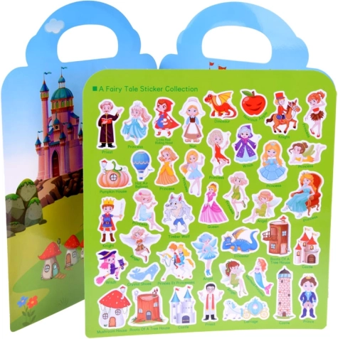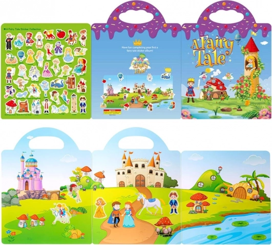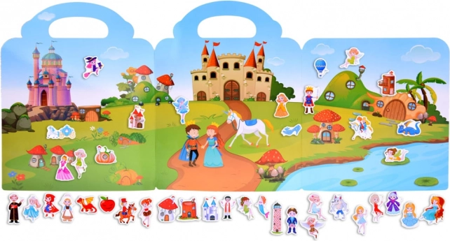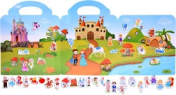 Tato zábavná sada s pohádkovým pozadím a barevnými samolepkami přenese děti do světa princezen, rytířů a hradů. Díky opakovatelně použitelným nálepkám mohou malí tvůrci vytvářet vlastní příběhy, měnit scény a hodiny se bavit.