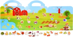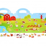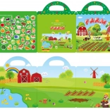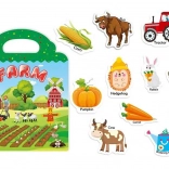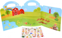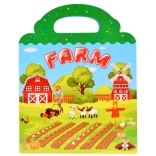 Skládací album z pevného kartonu s barevnou farmářskou scénou a výřezem pro snadné nošení. Ideální na cesty i do školky.