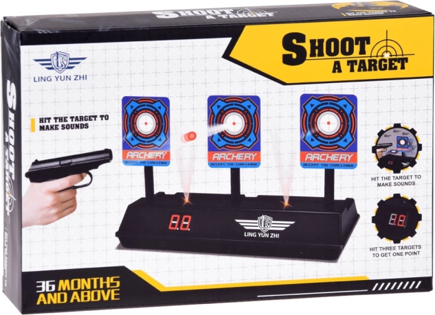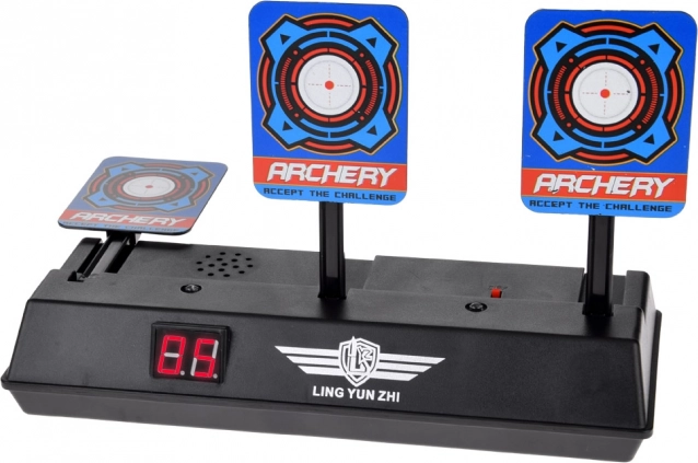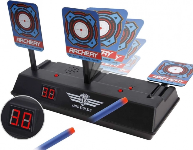 Díky kompatibilitě s hračkami na pěnové náboje (např. Nerf) si terč užijí děti i dospělí. Pevná plastová základna zajišťuje stabilitu na stole či podlaze a jednoduché ovládání usnadní rychlý start hry.