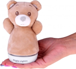 Tato noční lampička ve tvaru medvídka je ideální pro děti, které potřebují večer jemné světlo a pocit blízkosti. Příjemný na dotek, hebký povrch spolu s uklidňujícím světelným efektem přináší komfort při usínání i nočních probuzeních.