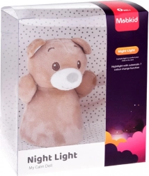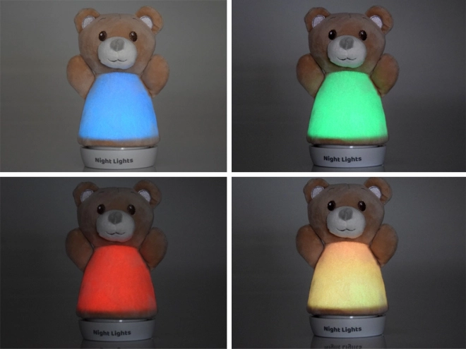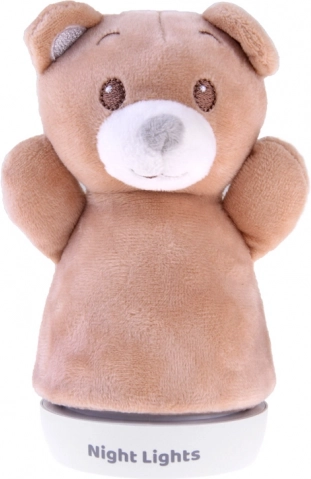 Jednoduchá stabilní základna umožňuje pevné umístění na noční stolek či polici. Světlo automaticky mění barvy (např. modrá, zelená, červená, žlutá) a vytváří příjemnou atmosféru pro malé děti i miminka. Plyšový potah lze snadno sejmout a vyčistit.