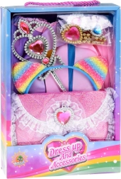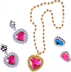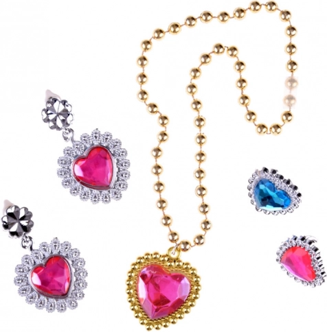 Zlatý náhrdelník s růžovým srdíčkem, odpovídající náušnice a prsteny dodají každé malé víle šmrnc. Ideální pro každou příležitost.