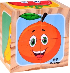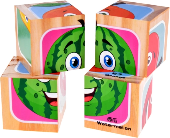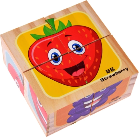 Dřevěné kostky s obrázky ovoce nabízejí zábavu i učení v jednom. Děti mohou vytvářet obrázky ovoce a rozvíjet svou představivost tím, že si sami sestaví vlastní varianty jako např. jahoda-banana nebo meloun-jablko. Každá kostka je pečlivě vyrobená, což zaručuje kvalitní a dlouhotrvající zábavu každému malému objevovateli.