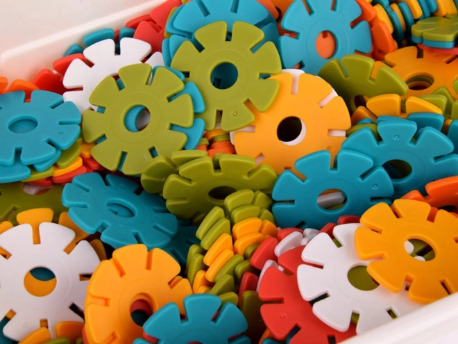 Stavebnice obsahuje 506 dílů v 6 různých barvách: bílá, žlutá, oranžová, červená, zelená, modrá. Kostičky jsou uloženy v plastovém boxu s víkem, který má úchyt pro snadné přenášení. Po skončení hraní si dítě může stavebnici jednoduše uklidit.