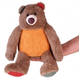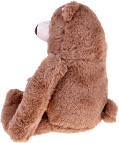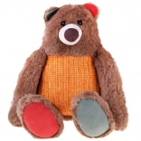 Medvídek je opatřen měkoučkým hnědým kožíškem, který je příjemný na dotek a vyzývá k mazlení.