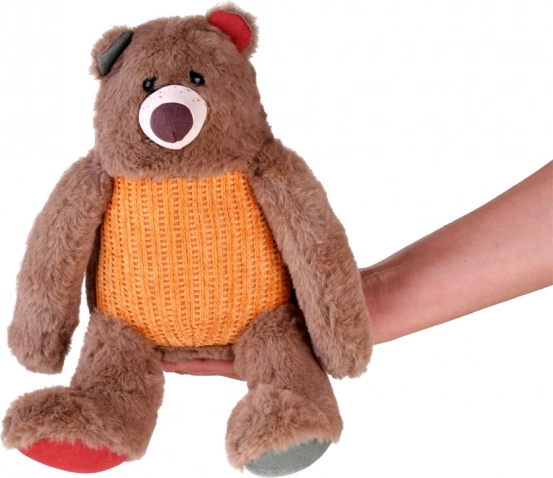 Roztomilý plyšový medvídek Teodor je dokonalým kamarádem pro malé i velké děti. Tento měkký hnědý medvěd je ideální pro objímání a dodá pocit pohodlí a bezpečí. Jeho výrazné barvy - oranžový pletený svetr, zelené a červené ouška a tlapky dodávají hračce veselý vzhled.