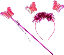 Barevná motýlí křídla, čelenka a hůlka dotvoří dokonalý vílí vzhled pro karneval i hraní doma.